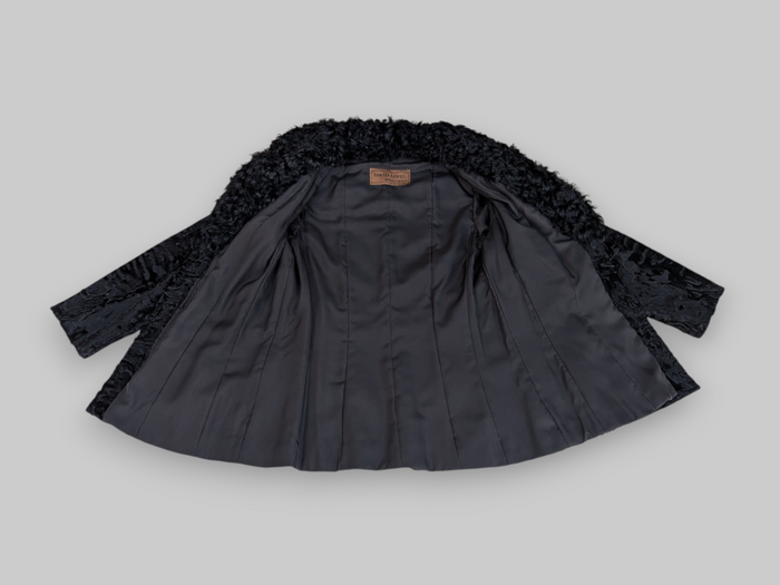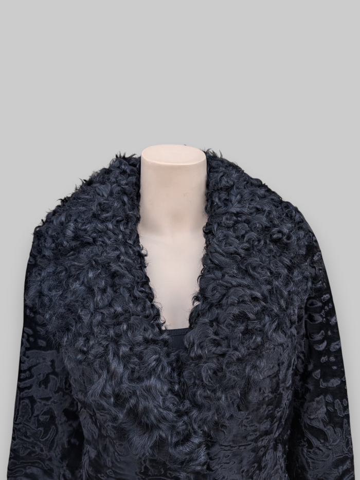 Stunning upscale fur jacket made by David Appel with two types of lamb fur from the finest suppliers in the world. Comfortable small (size 4), dress up or dress down. It features a classic design tailored with a fitted body, a notch collar made from thick & curly Kalgan lamb, two hook & eye closures, and two pockets plus a hidden inside pocket.